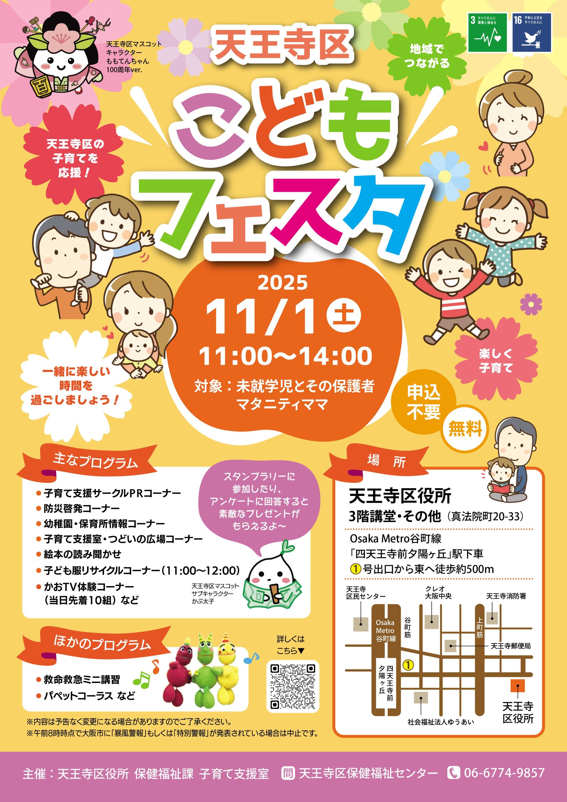 天王寺区 こどもフェスタ(A4チラシ両面/A3ポスター|2025年9月制作)