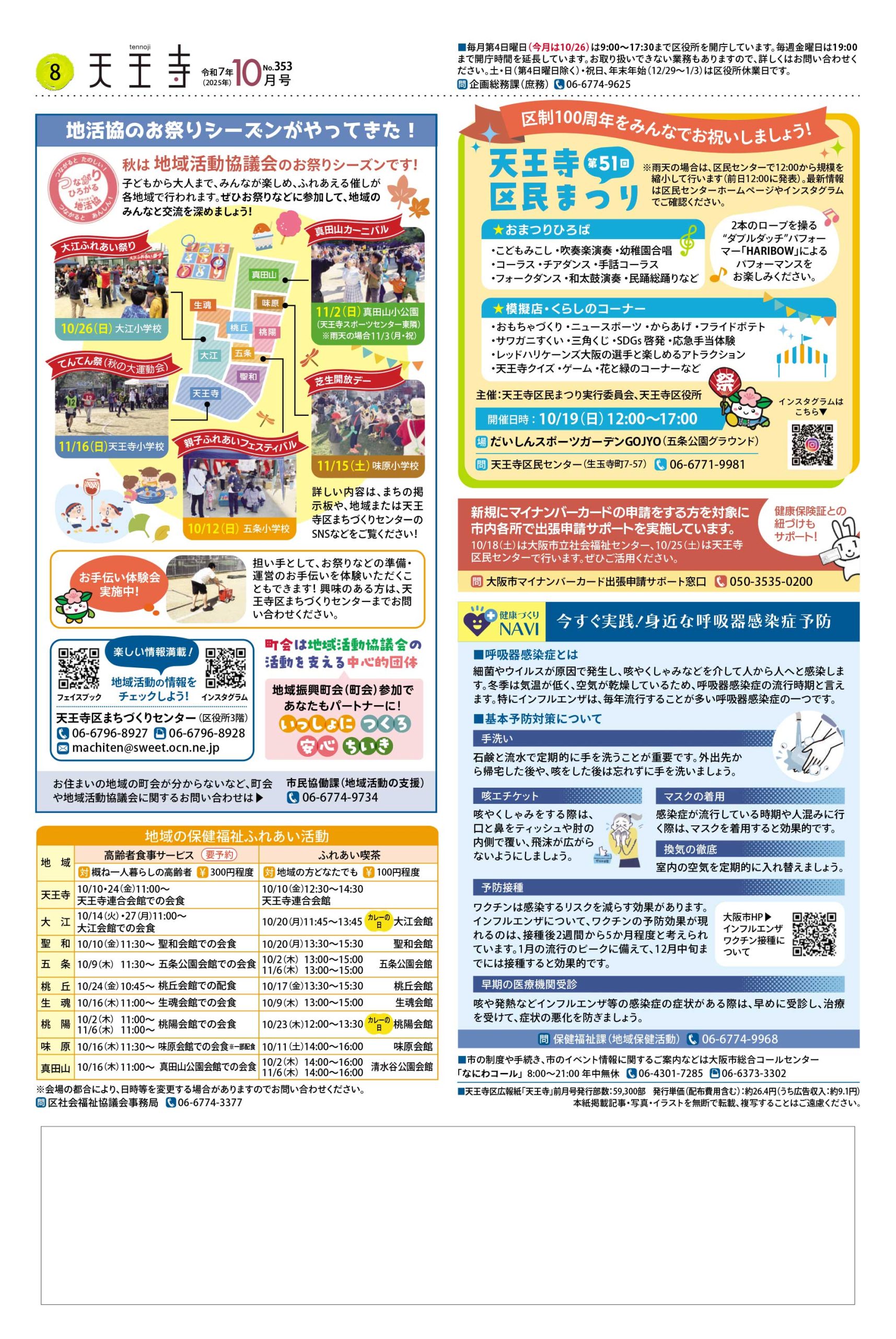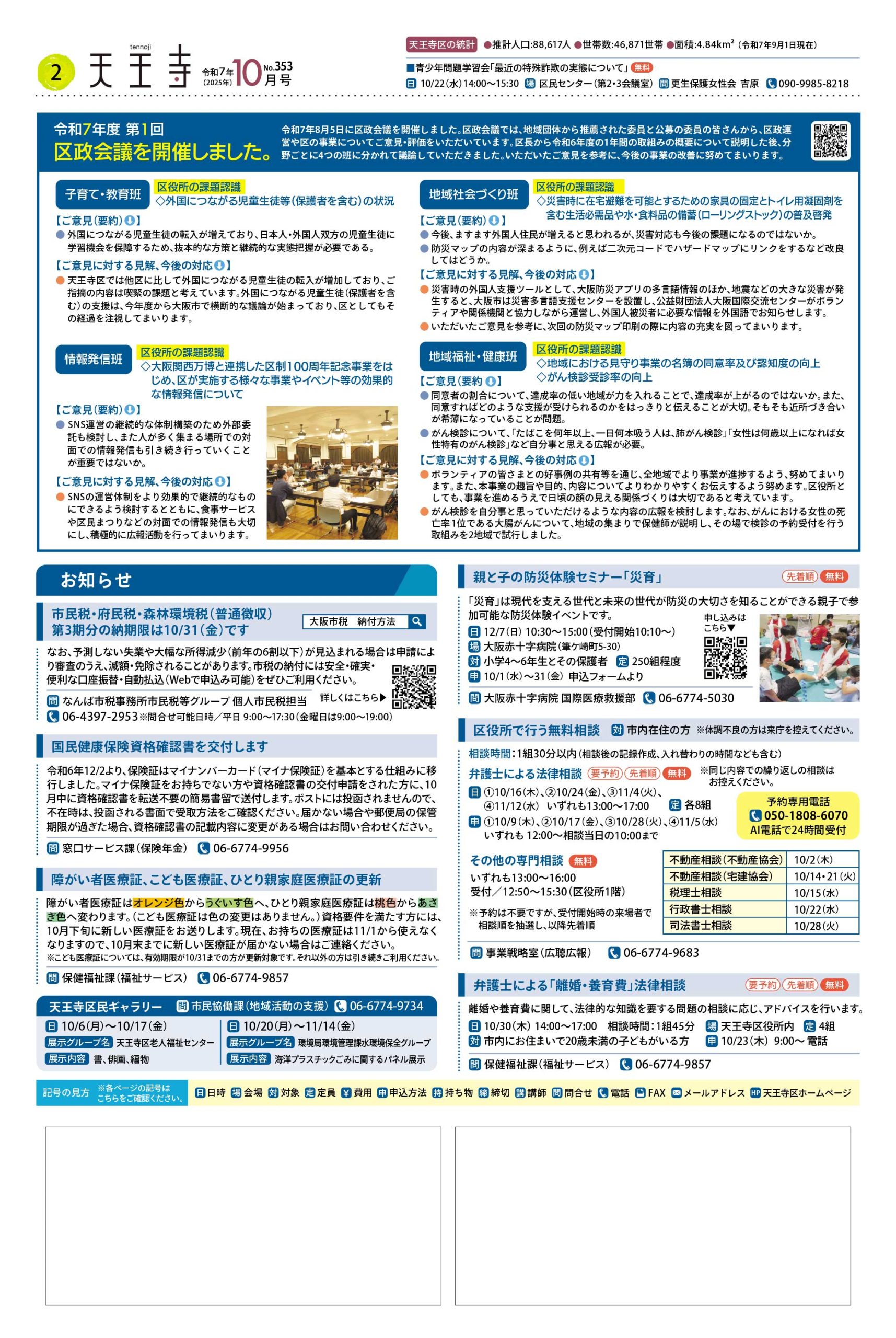 天王寺区広報紙「天王寺」 令和7年10月号|2025.10.1発行(大阪市天王寺区)